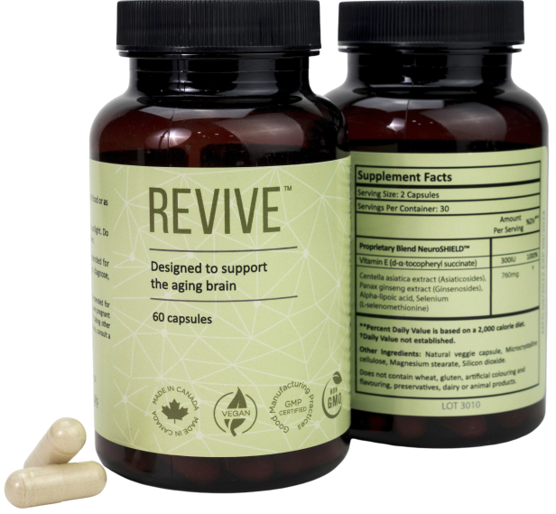 REVIVE™ is designed to be taken every morning with food of every day as a long-term, effective and healthy way to care for your brain throughout your lifetime. REVIVE™ is made in Canada, uses a unique blend of the same clinically proven ingredients found to have a positive impact on brain health and, unlike many other supplements and energy products, provides you with a lasting boost of mental energy that isn’t temporary and won’t cause an afternoon crash.
